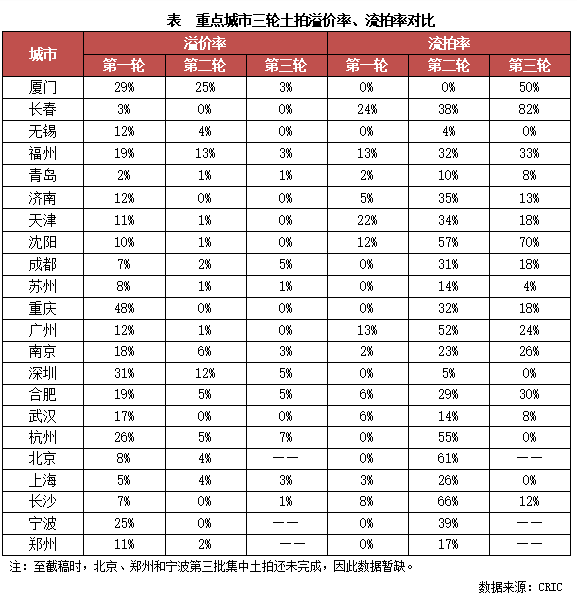表 重點城市三輪土拍建面、金額、地價變動情況(略)