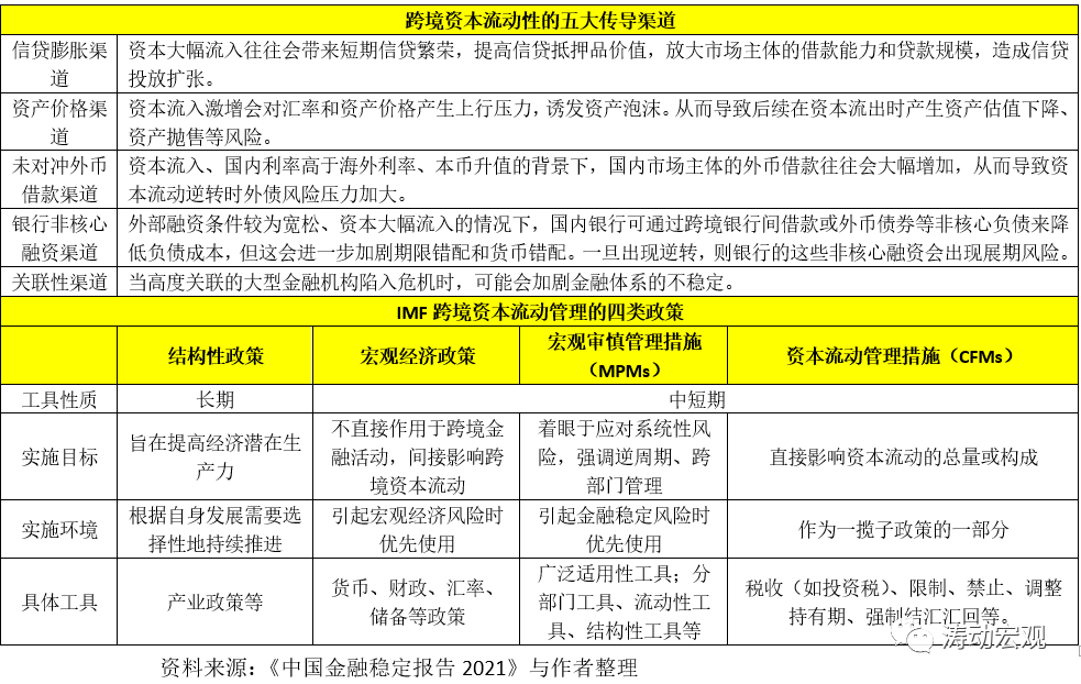IMF等相關研究表明,跨境資本流動的風險傳導可以分為信貸膨脹、資產價格、未對沖外幣借款、銀行非核心融資、關聯性五類渠道,且這五類渠道之間會通過反饋效應相互強化。同時IMF通過《二十國集團基于國家經驗得出的資本流動管理一致性結論》(2011年)和《資本流動開放與管理:機構觀點》(2012年)等文件構建了針對跨境資本流動的政策框架。