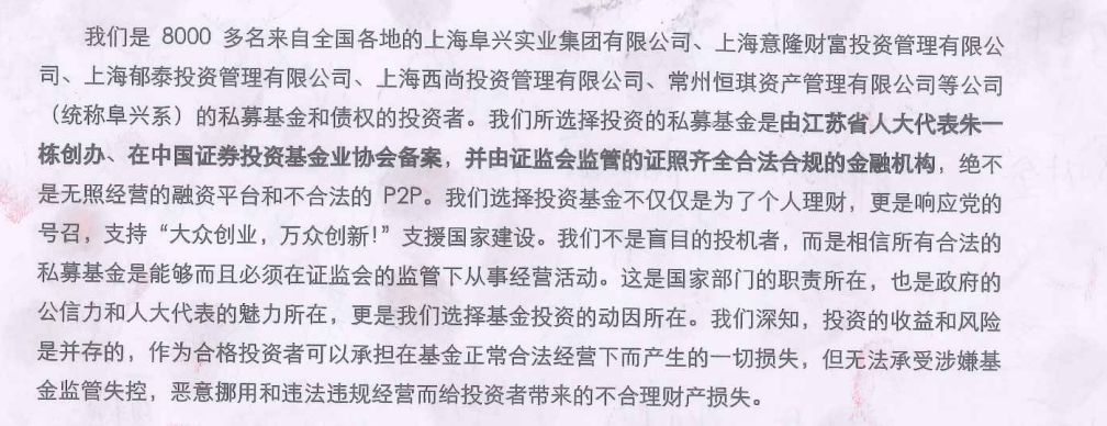 網上流傳的阜興投資者請愿書