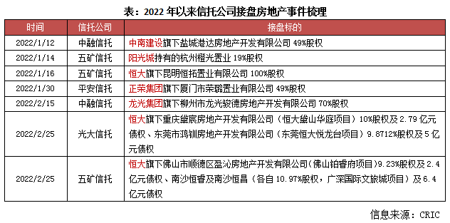 相較之下,信托公司則表現尤為積極,2022年已有多起接盤動作。在市場低迷、違約風險延續的背景下,信托公司為何迎難而上?其背后意圖何在?信托公司的入局能否真的能給房地產行業帶來轉機?