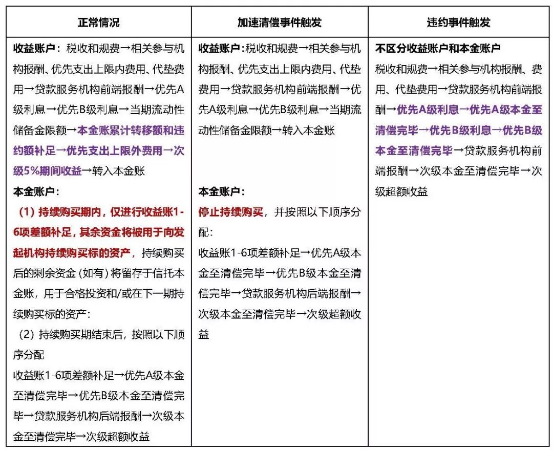 加速清償事件設置的目的在于改變現金流的支付順序來保障優先級證券的兌付,如果上述三項內容在一個項目中均未出現,那么現金流的支付順序自然也就不可能發生改變,設置加速清償事件的目的也就成為一種空想。