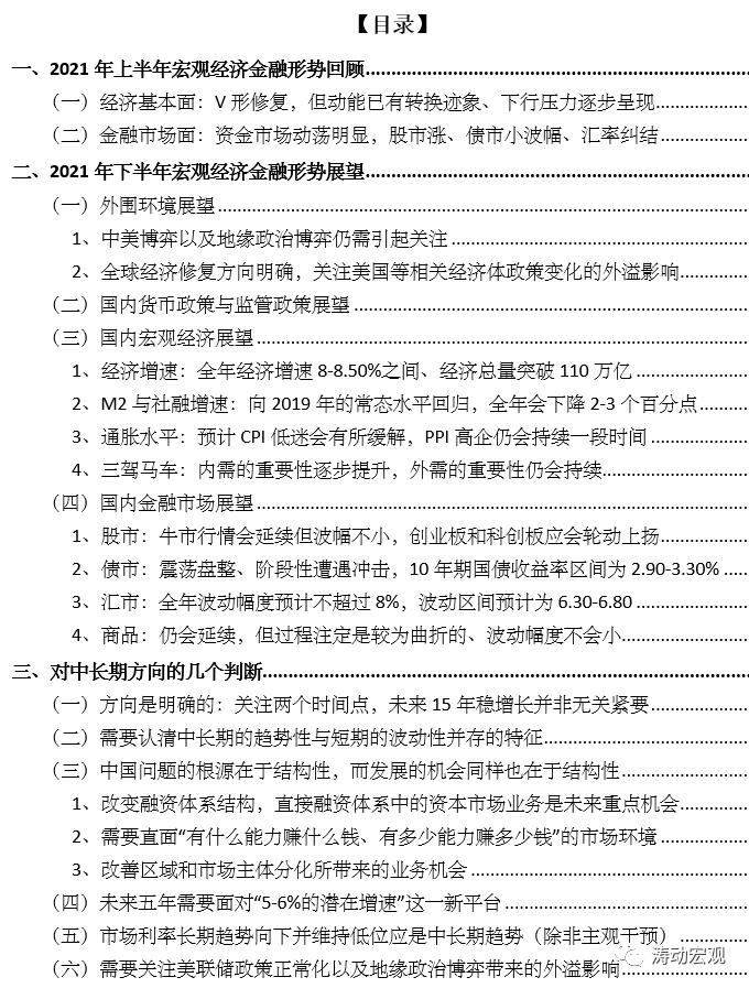 本報告在2020年底的基礎上,結合最新情況變化、站在當前視角,進一步探討2021年下半年的宏觀經濟金融形勢。