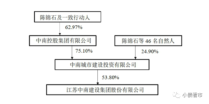 從股權(quán)結(jié)構(gòu)看,中南建設(shè)的控股股東為中南城建,持股比例為53.85%,公司實際控制人為陳錦石及一致行動人。