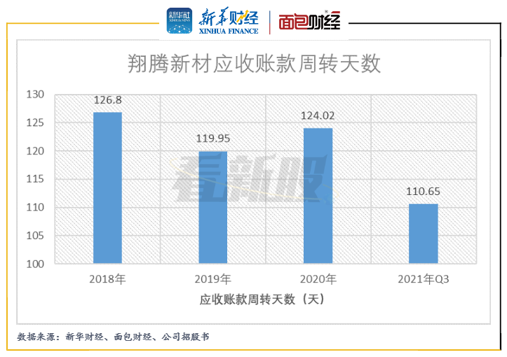 2018年年末至2021年前三季度末,翔騰新材應收賬款賬面價值分別為21283.22萬元、24542.26萬元、36505.38萬元和42689.12萬元,占當期總資產和流動資產的比例分別超過五成和超過六成。