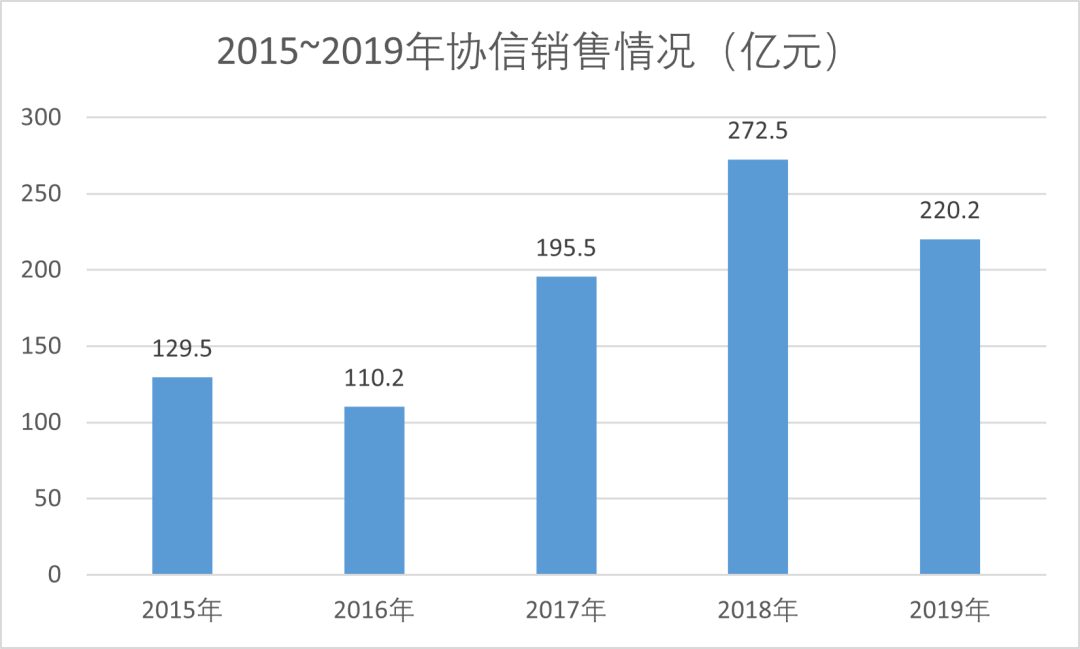 也正是從2015年開始,協(xié)信進(jìn)入了銷售瓶頸期,2015年至2018年銷售規(guī)模徘徊在100億元至300億元。這正是因?yàn)椋瑓f(xié)信項(xiàng)目?jī)?chǔ)備構(gòu)成中辦公、商業(yè)等占比高,住宅類產(chǎn)品占比較低,去化周期偏長(zhǎng)。