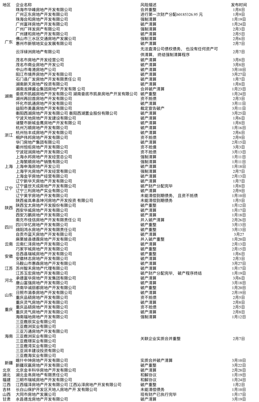 媒體披露的數(shù)據(jù)顯示,從2019年開年到2019年12月12日,宣告破產(chǎn)的房企為492家。另?yè)?jù)金角財(cái)經(jīng)不完全統(tǒng)計(jì)數(shù)據(jù),2020年元旦到2020年2月,僅僅兩個(gè)月,房地產(chǎn)行業(yè)內(nèi)就有70家房企有破產(chǎn)文書發(fā)布。睿和智庫(kù)也搜集了2020年部分房企破產(chǎn)的信息,見下表: