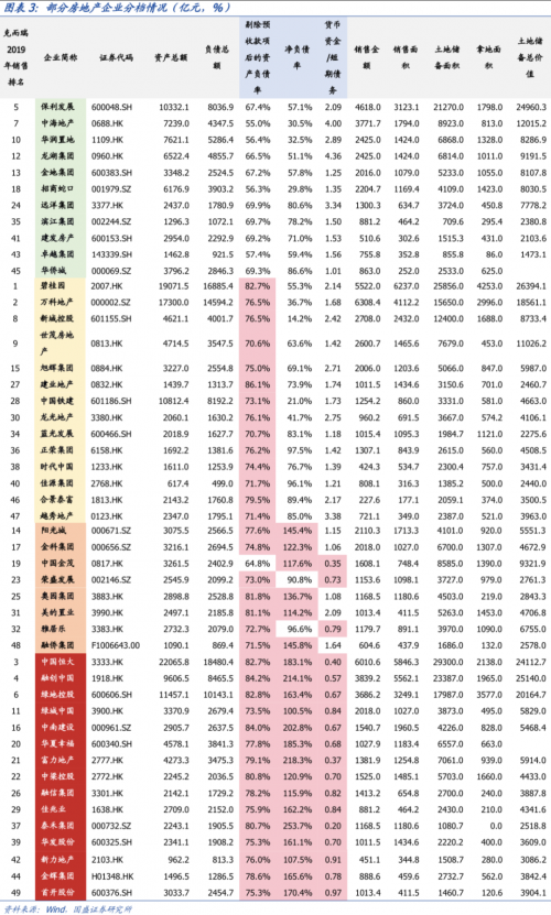 根據(jù)國(guó)盛證券按“三道紅線”標(biāo)準(zhǔn)測(cè)算,以2019年末數(shù)據(jù)為基準(zhǔn),銷售排名前50位的房地產(chǎn)企業(yè)中,均未超過警戒線的有11家,超過1條警戒線的有15家,超過2條警戒線的有8家,超過3條警戒線的有15家。