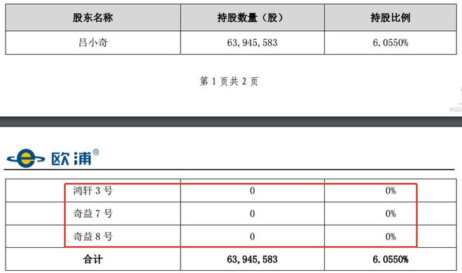 隨后,三個信托計劃兩次被信托公司強制平倉,繼續被動減持。到2月底,三個信托計劃已經被清倉,持股數量降到零。但當時呂小奇本人仍持有歐浦智網6.055%股份。