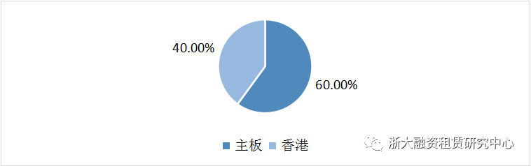 8月開展融資租賃業務的上市公司中在主板上市的企業占比最高,占總數的60.00%;其次是香港上市的企業,占剩余的40%。本月創業板上市公司未開展業務。