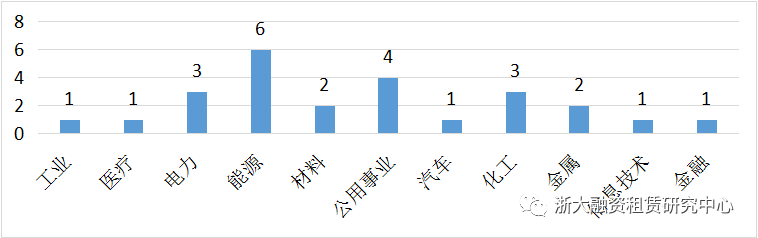 8月上市公司開展融資租賃業務行業投向中,數量最多的是能源行業,開展6筆業務;其次是公用事業領域,均開展了4筆融資租賃業務;化工和電力行業均開展3筆融資租賃業務,其余的子行業開展業務數量相對較少。