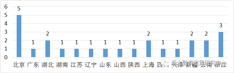 8月上市公司開展融資租賃業務分布南北相對均衡,其中北京開展5筆業務,數量最多。南方以浙江、湖北、云南為主。