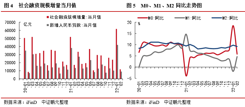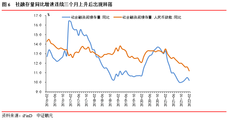 1月社融大幅超預期,2月出現階段性下滑,應當理性看待,不應太悲觀。原因一是總基調仍是穩增長和寬信用,決心不改。二是2月數據走弱也受去年同期高基數影響,21年2月新增信貸數據是歷史高點。三是較往年情況,1月往往有開門紅的需要,2月數據大部分情況不及預期。四是綜合1-2月來看,2022年1-2月累計新增社融7.36萬億元,同比仍多增4,499億元。五是2月PMI生產經營活動預期指數為58.7%,較上月大幅增加1.2個百分點,穩增長預期強。