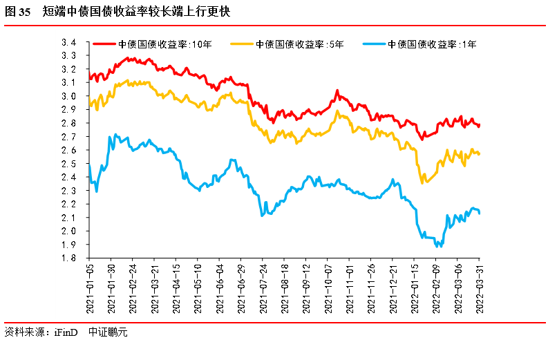 2月的經濟數據雖有向好,但難掩與微觀主體較弱現實的背離,經濟下行壓力仍大,債券市場較情緒化。受貨幣寬松預期,美聯儲加息,地緣政治沖突、疫情多重因素影響,債市在多空交織下,維持震蕩,整體還是走熊。其中,1年期中債國債到期收益率上行幅度明顯大幅5年期和10年期中債國債到期收益率。