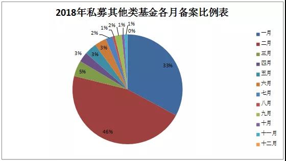 根據中國證券基金業協會公布的2018年私募其他類產品備案信息,以及時貳閆金融研究院匯總的備案產品數據,2018年共備案私募其他類產品1284只,其各月備案數量及比例數據如下: