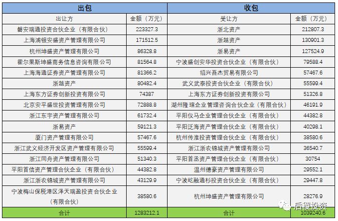 1、三級(jí)市場(chǎng)投資機(jī)構(gòu)收包出包排行榜