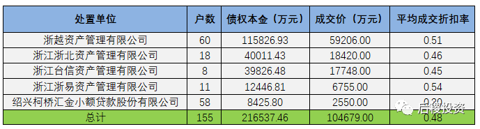 近一半成交記錄為單戶債權(quán),其平均成交折扣率超0.8;其余成交記錄平均成交折扣率在0.4-0.5。