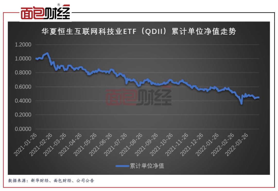 根據(jù)財(cái)報(bào)統(tǒng)計(jì),華夏基金旗下QDII基金2021年累計(jì)產(chǎn)生凈虧損超過(guò)95億元。考慮到2022年以來(lái)凈值下行明顯,公司旗下QDII基金2021年及2022年一季度累計(jì)虧損超過(guò)100億元已無(wú)懸念。