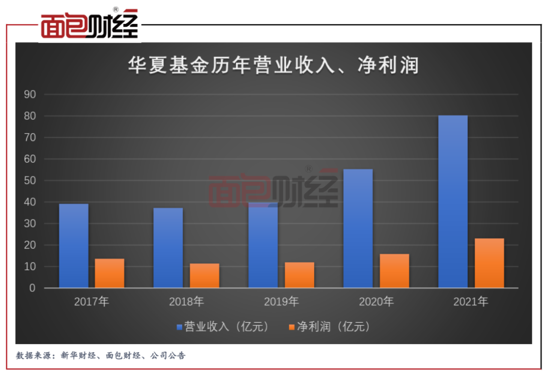 中信證券財(cái)報(bào)顯示,華夏基金2021年實(shí)現(xiàn)營(yíng)業(yè)收入80.15億元、凈利潤(rùn)23.12億元,同比均大幅增長(zhǎng)。