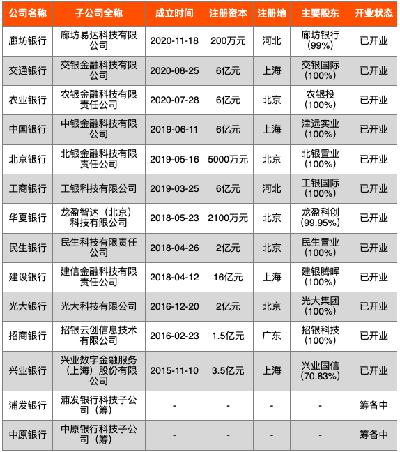 原標(biāo)題: 中國持牌金融機構(gòu)科技子公司大全(2021)