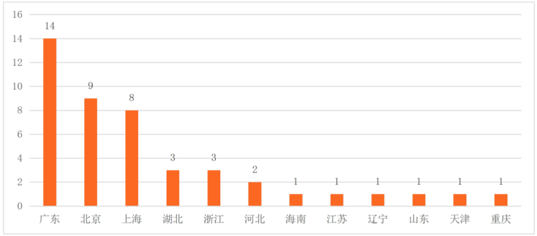 圖1:央行及持牌金融機構(gòu)已成立金融科技子公司區(qū)域分布