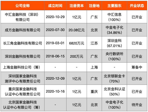 表1:8家央行金融科技子公司/認證中心/測評中心