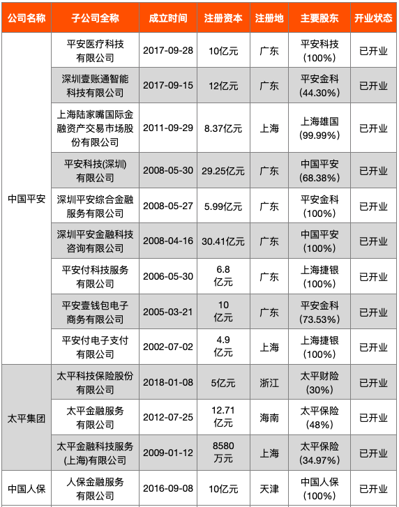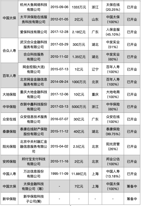 表3:29家保險業(yè)金融科技子公司