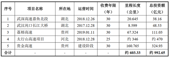 除嘉通高速項目之外,中交投資旗下還持有并運營武深高速嘉魚北段、武漢沌口長江大橋、荔榕高速、太行山高速、貴金高速等項目,預計總投資額約為1,000億元,分布于湖北省、河北省、貴州省等省份,均為自持運營管理的基礎設施項目。其中貴金高速項目正處于投資建設階段,太行山高速項目由5條高速組成,其中4條已運營,1條處于建設階段。