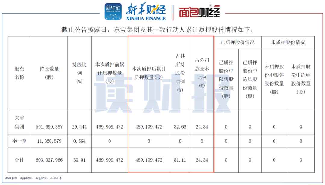 圖4:東寶集團(tuán)及其一致行動(dòng)人累計(jì)質(zhì)押股份情況