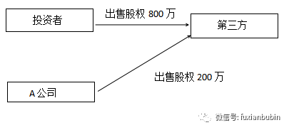 如,假設投資者投資A公司,若此時投資者占有的股份為20%,A公司的其他股東占有的股份為80%,此時若A公司擬出售1000萬股的股權給第三方,其交易結構為: