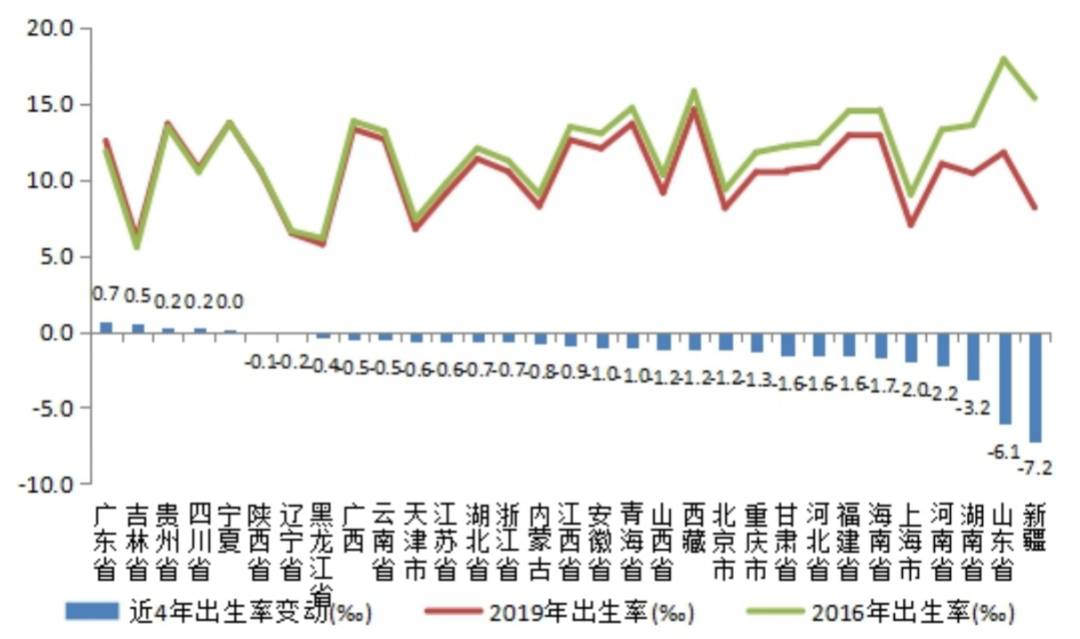注:出生率高中低三檔劃分標準:出生率高于12‰為高出生率城市;介于9‰和12‰之間為中等;低于9‰為低出生率城市。