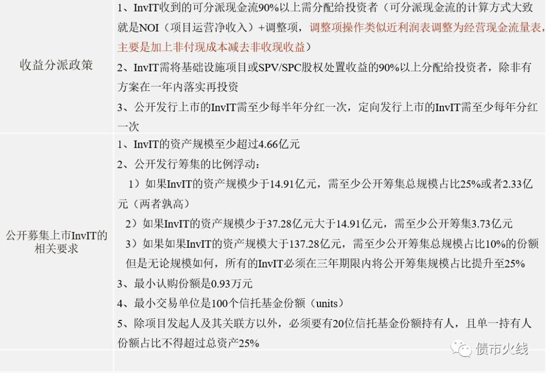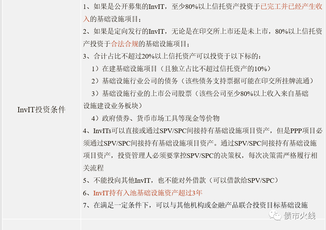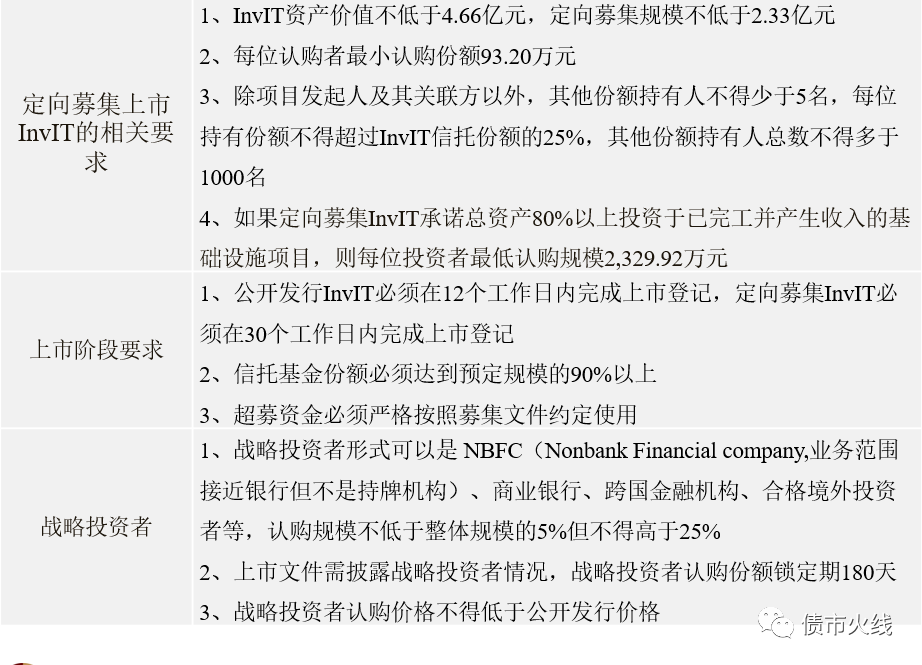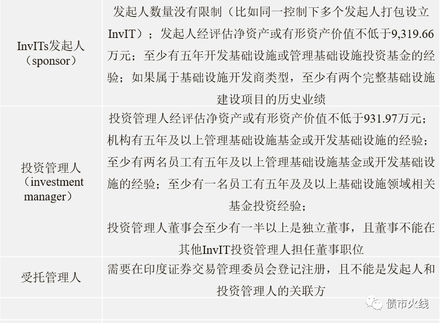 印度證券交易管理委員會(SEBI)于2007年發(fā)布REITs監(jiān)管文件草案,通過與政府部門、地產(chǎn)開發(fā)商和投資者的合作磋商并借鑒國外成熟市場的經(jīng)驗,最終在2014年頒布了目前施行的REITs監(jiān)管文件,2019年4月India’s maiden REITs的上市讓印度REITs最終破繭而出。在REITs監(jiān)管文件和產(chǎn)品上市的同時,印度的invITs也是在同步發(fā)展,目前已有“Indian Grid Trust”和“IRB INvIT Fund”兩只產(chǎn)品在NSX上市。其實印度REITs和invITs載體均為信托,在產(chǎn)品結構和監(jiān)管條款上有許多相似之處,以下就是對印度invITs的監(jiān)管規(guī)則進行簡要的概述: