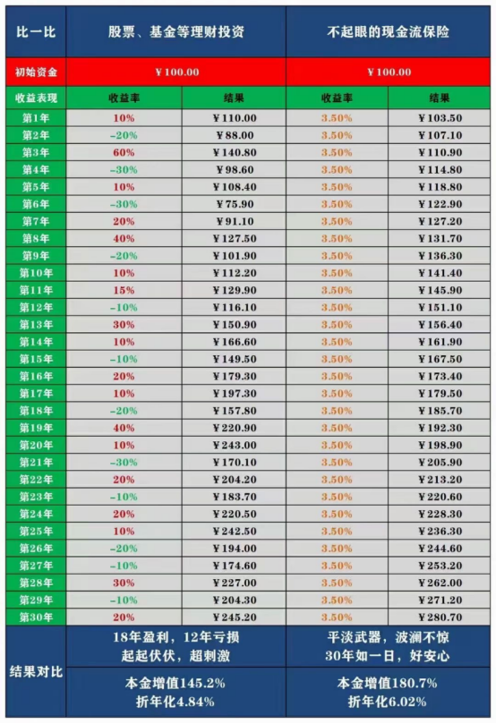 是,運氣好是能在短期內獲得不錯的收益,但時間拉長,未必比得上年金險的穩健增值。