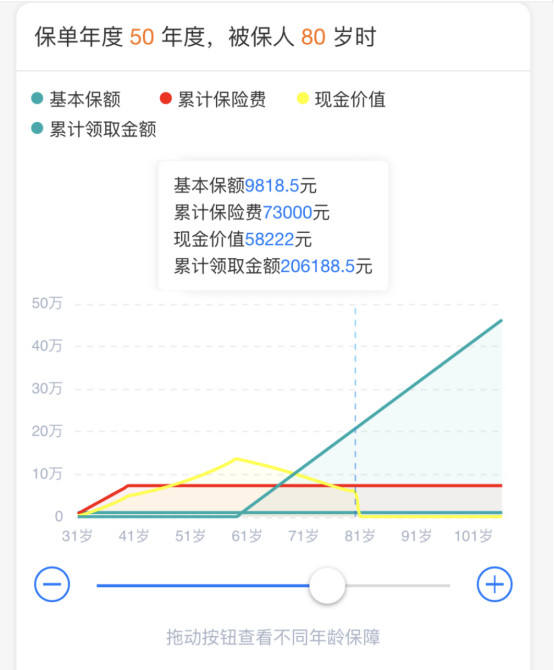 等到小王80歲的時候,已經領取了20.6萬,本金也已經翻了近3倍。