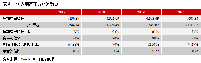 2021年6月初,恒大地產集團子公司電子商業匯票到期未兌付,再次引發市場對恒大地產流動性的關注。2020年恒大地產因戰略投資的1,300億元無法償還而出現“公開信”事件,后在政府協調下進行債轉股。目前,恒大地產短期償債壓力依然很大,資產負債率維持高位。商業票據違約,將導致供應商斷貨,進一步影響正常生產經營。雖然是子公司票據違約,但在一定程度上顯露出恒大地產整體資金鏈出現一定程度的緊張。