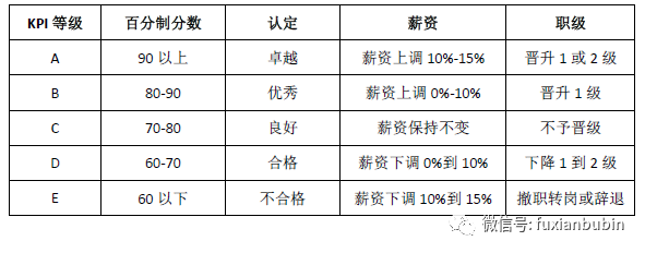 通過上述交流所形成的目標任務后,企劃部搭建完善的KPI考核指標體系進行考核,其考核結果應用于相關人員的晉級、晉升、淘汰等。具體考核級別為: