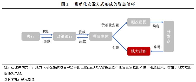 從宏觀(guān)來(lái)看,棚改貨幣化安置對(duì)于三四線(xiàn)城市房地產(chǎn)市場(chǎng)去庫(kù)存功不可沒(méi)。棚戶(hù)區(qū)改造短期內(nèi)大量釋放居民購(gòu)房需求,而來(lái)自于PSL的貨幣化安置資金則直接提高了房地產(chǎn)到位資金,刺激房地產(chǎn)銷(xiāo)售向好、房?jī)r(jià)地價(jià)全面上行,對(duì)地區(qū)當(dāng)前經(jīng)濟(jì)穩(wěn)定和未來(lái)經(jīng)濟(jì)發(fā)展均具有明顯的拉動(dòng)效應(yīng)。有機(jī)構(gòu)曾測(cè)算,2017年我國(guó)棚改計(jì)劃開(kāi)工600萬(wàn)套,即使按照50%安置比例中性假設(shè),就可以實(shí)現(xiàn)2.55億平方米的去庫(kù)存規(guī)模。根據(jù)統(tǒng)計(jì)局的數(shù)據(jù),截至2018年5月末,全國(guó)商品房待售面積5.6億平方米,創(chuàng)最近46個(gè)月的新低。去庫(kù)存進(jìn)程告一段落。隨著去庫(kù)存任務(wù)的基本完成,爆發(fā)式增長(zhǎng)的貨幣化安置方式帶來(lái)的諸多問(wèn)題開(kāi)始逐漸顯現(xiàn)。一方面,貨幣化方式被視作三四線(xiàn)城市住房?jī)r(jià)格非理性上漲的推手之一;另一方面,不規(guī)范的貨幣化安置項(xiàng)目則存在提高政府隱性債務(wù)風(fēng)險(xiǎn)的可能。一些地區(qū)不規(guī)范的貨幣化安置項(xiàng)目,本身土地出讓收入無(wú)法覆蓋政策性銀行的貸款本息,以土地出讓后的商業(yè)開(kāi)發(fā)收入作為專(zhuān)項(xiàng)收入來(lái)源,實(shí)現(xiàn)項(xiàng)目的融資平衡。而事實(shí)上貨幣化安置過(guò)程中政府并不是商業(yè)開(kāi)發(fā)主體,導(dǎo)致投資與收益的不匹配,地方政府財(cái)政無(wú)形中承擔(dān)了相當(dāng)部分的還款責(zé)任。