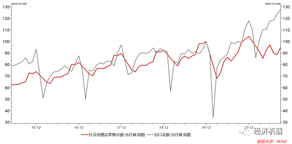 圖3、外需和內需(社會零售銷售)表現(2019.12=100)