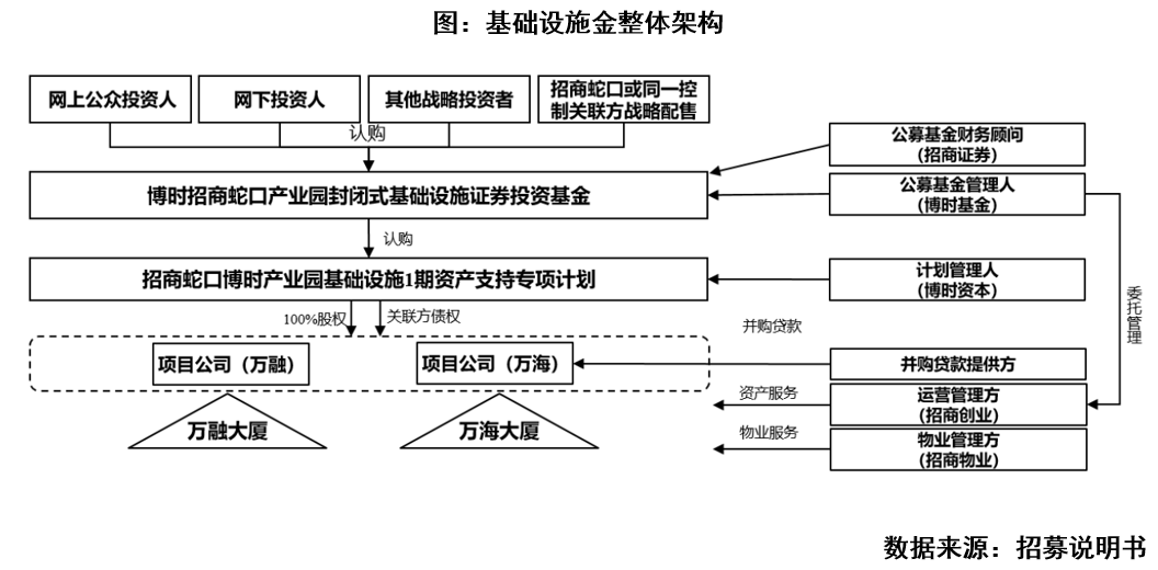 項目主要參與機構大都是央企招商局集團的下屬企業(yè),租金收入確定性較高,如公募基金管理人為博時基金,專項計劃管理人為博時資本,基金托管人為招商銀行,外部管理機構為招商蛇口旗下的招商創(chuàng)業(yè),財務顧問為招商證券及中信證券。