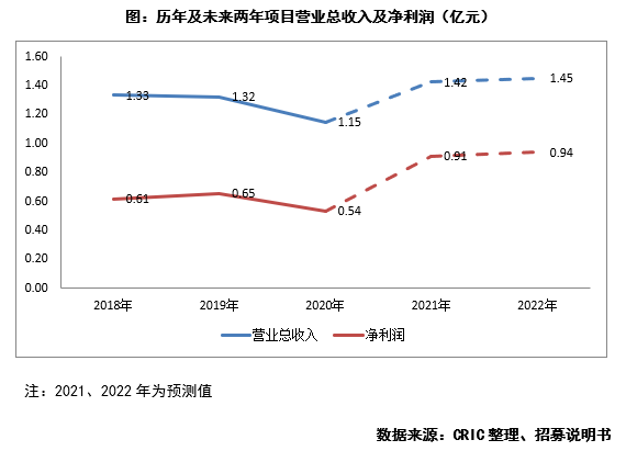 本次入池的資產項目為萬海大廈及萬融大廈,2020年底的評估價值共25.28億元。2018至2020年末,項目公司營業(yè)總收入分別為1.33、1.32和1.15億元;凈利潤分別為6137萬元、6536萬元和5352萬元。2021至2022的預測投資人凈現金流分派率分別為4.1%、4.17%;資本化率(Cap Rate)分別為4.45%、4.56%。