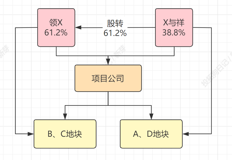 即,領地收購61.2%的股權,但雙方約定“該部分股權”對應“B、C地塊100%開發收益權”。瑞與祥剩下38.8%對應A、D地塊開發收益權。