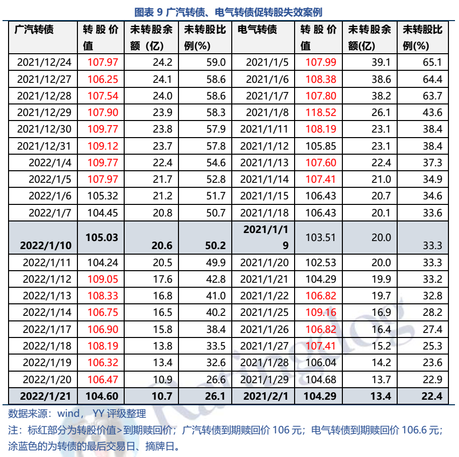 首先,因為投資者手里的轉債不一定會轉股,有風險。當轉股價值只是稍大于贖回價時,一方面轉股利潤空間不大,另一方面需要承受隔夜風險、操作復雜,所以投資者不一定會選擇轉股,廣汽轉債、電氣轉債就是前車之鑒,雖然轉股價值基本大于到期贖回價(106元、106.6元),但最終還是到期償還了10.7億、13.4億。而自己手里的轉債一定能不用還錢!