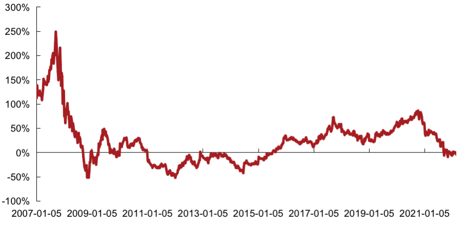 備注:恒生中國內地地產指數的推出主要是為了反映前10只市值最大、流通性最高,在香港上市但主要營業收入來自中國內地的房地產股票表現。當前成分股共10只,分別為:中國海外發展、世茂集團、龍湖集團、華潤置地、龍光集團、碧桂園、中國恒大、恒大物業、碧桂園服務、融創中國。