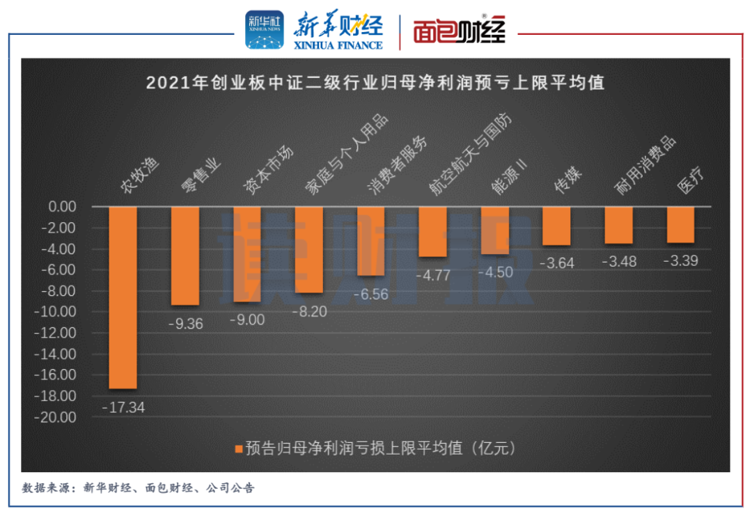 圖2:2021年創業板中證二級行業歸母凈利潤預虧上限平均值