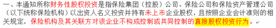 實際上,上述通知僅是針對保險資金開展財務性股權(quán)投資的限制,而財務性股權(quán)投資指的是對未上市企業(yè)的直接股權(quán)投資行為,如下(來自上述通知):