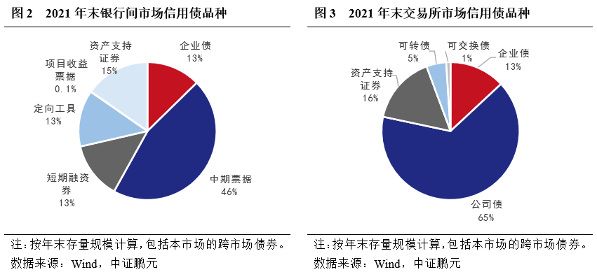在企業性質上,交易所信用債的非國有性質的發行主體略多于銀行間市場,交易所市場相對更具有包容性。從2021年末存量債發行主體性質分布來看,銀行間信用債非國有發行主體占比7%,交易所信用債的該比例為10%。