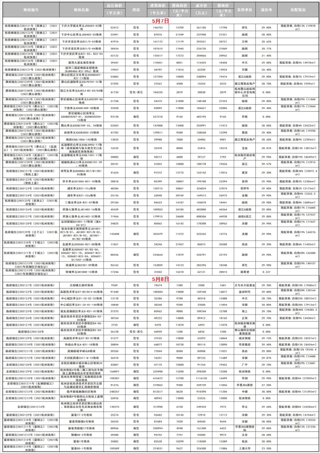 杭州第一批集中供地的57宗地塊悉數(shù)出讓,每一宗地塊都是爆點