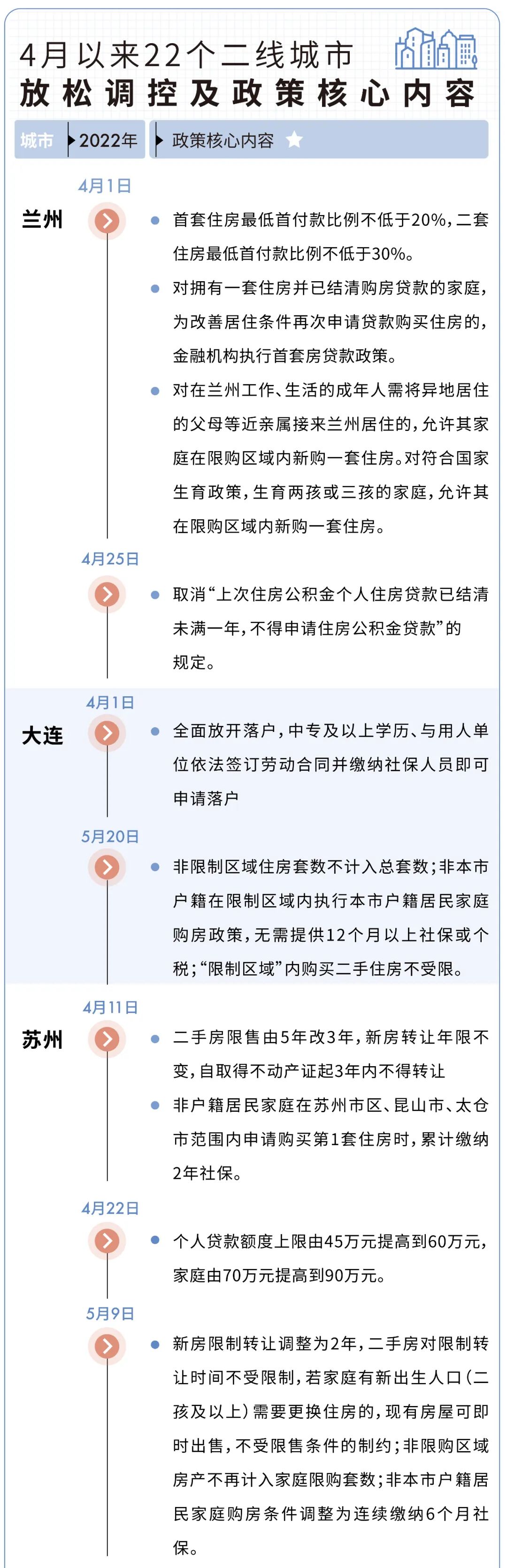 據(jù)CRIC不完全梳理,4月1日至5月24日,全國共22個二線城市放松樓市調(diào)控46次。