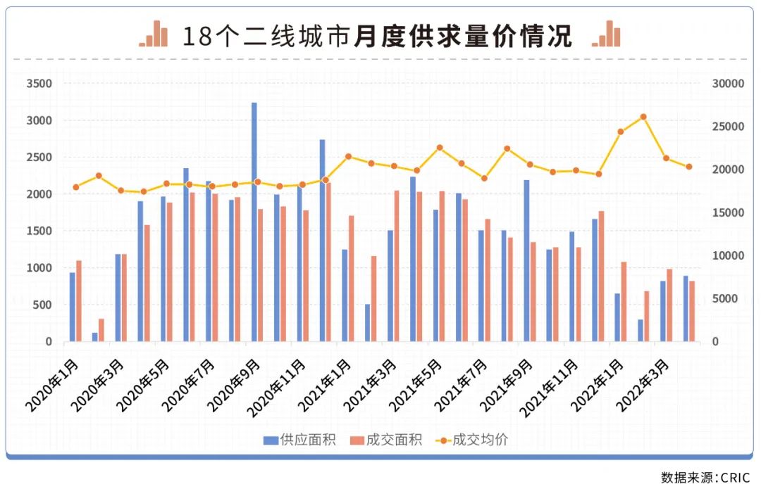 數(shù)據(jù)顯示,18個重點二線城市前4月新建商品住宅成交面積僅為3554萬平方米,較2021年同期近乎腰斬,下降比例達到49%,較2020年同期下降15%。