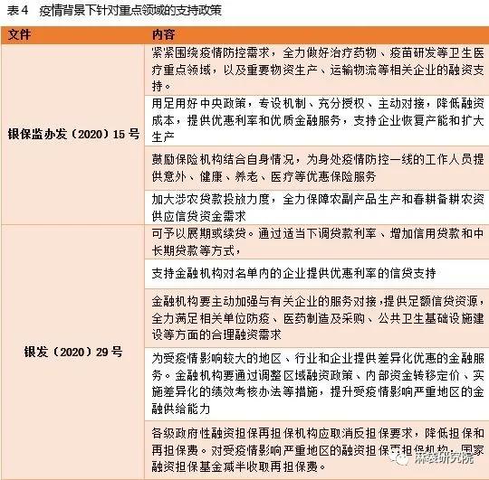 疫情下,部分行業企業受疫情影響和沖擊比較大,尤其是交通運輸、批發零售、文化娛樂、住宿餐飲等行業的小微企業、民營企業,在停工停產的情況下面臨現金流困境,下表列示了重點領域的支持政策: