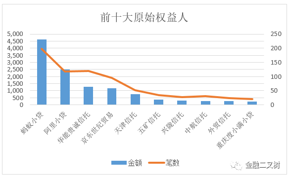 從上圖可以看出,在發(fā)行過的企業(yè)消金ABS中,螞蟻花唄、借唄仍是體量最大的,占絕大多數(shù)比例。螞蟻、京東為主要發(fā)行主體,除此之外,百度、小米、蘇寧旗下的消費(fèi)金融公司也參與發(fā)行,但是市場份額相對較小。